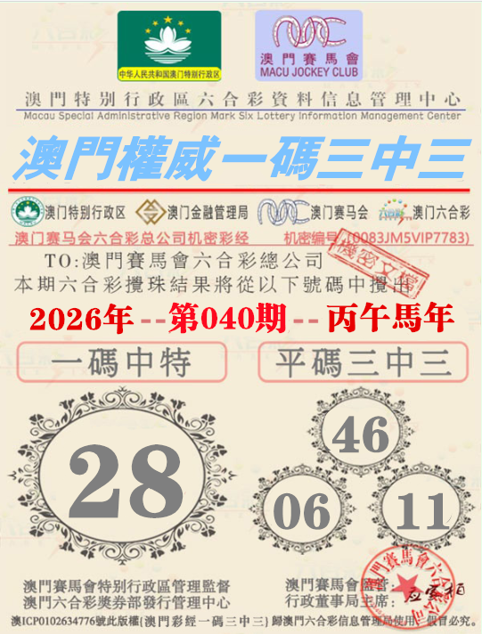 046期:【澳门权威资料】√一码三中三√ 澳门权威精准资料