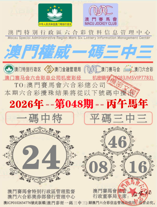 048期:【澳门权威资料】√一码三中三√ 澳门权威精准资料