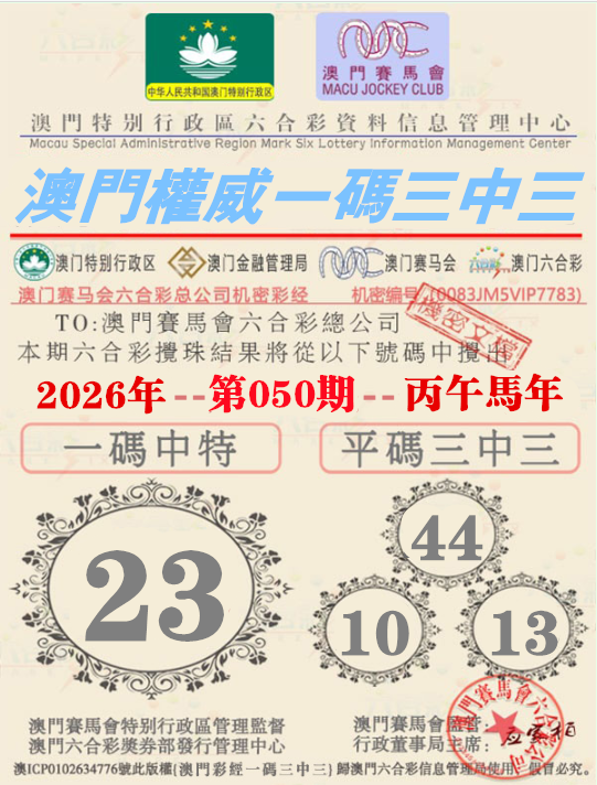 044期:【澳门权威资料】√一码三中三√ 澳门权威精准资料